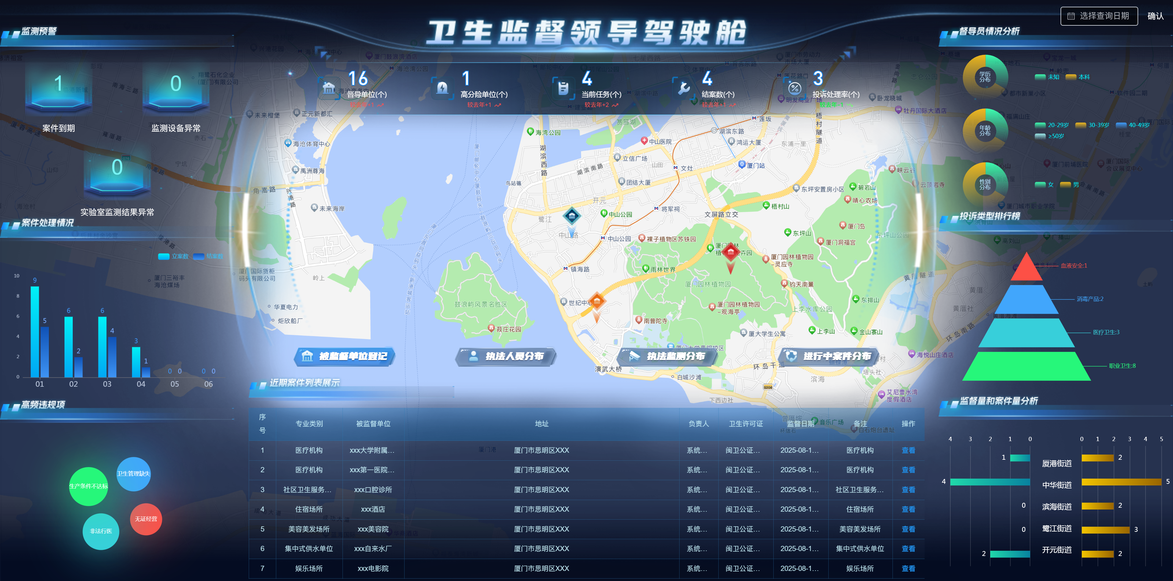 “智慧衛(wèi)監(jiān)綜合監(jiān)管服務(wù)管理系統(tǒng)”涵蓋監(jiān)督執(zhí)法應(yīng)用、非現(xiàn)場執(zhí)法應(yīng)用、碼上監(jiān)管、可視化駕駛艙、信息交換系統(tǒng)等內(nèi)容,實現(xiàn)加強(qiáng)衛(wèi)生監(jiān)督綜合執(zhí)法能力建設(shè),依法推進(jìn)衛(wèi)生監(jiān)督工作,不斷創(chuàng)新衛(wèi)生監(jiān)督執(zhí)法手段,提高衛(wèi)生監(jiān)督的監(jiān)管和應(yīng)急處置水平,通過建設(shè)智慧衛(wèi)監(jiān)系統(tǒng),將傳統(tǒng)現(xiàn)場監(jiān)管與非現(xiàn)場物聯(lián)網(wǎng)智能監(jiān)督監(jiān)測手段相結(jié)合,解決目前衛(wèi)生監(jiān)督機(jī)構(gòu)無法及時掌握和處置突發(fā)狀況的問題,做到在第一時間獲取現(xiàn)場數(shù)據(jù),在事件發(fā)生、升級前提前預(yù)警和處置,提高執(zhí)法效率。